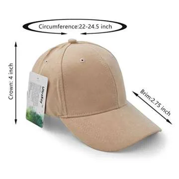 UltraKey Suede Baseball Cap, Unisex Faux Suede Leather Classic Adjustable Plain Hat Baseball Cap(Khaki)