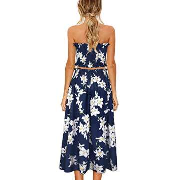 ULTRANICE Women's Floral Print Tube Crop Top Maxi Skirt Set 2 Piece Outfit Dress with Pockets