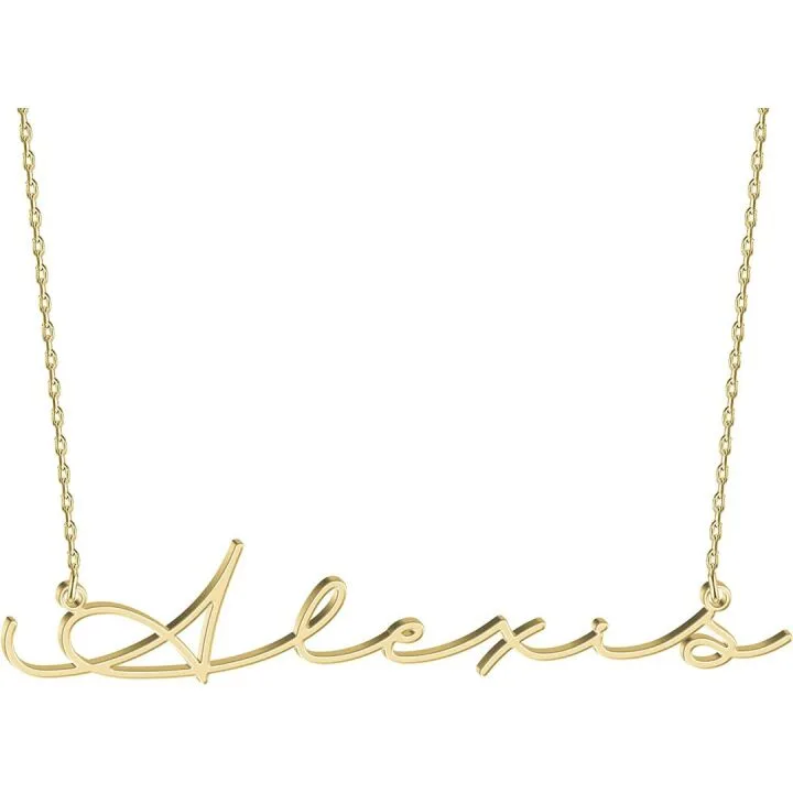 Show moreIntroducing the perfect blend of elegance and personalization: a stunning necklace made of 100% 925 sterling silver. With a polished surface that gleams beautifully in the light, this necklace will become a cherished piece in any jewelry collection. It features a classic glossy design, sculpted in a flowing script font, that adds a fanciful touch to your style.