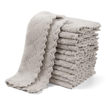 Show moreIntroducing the UMANI 12 Pack Kitchen Dish Cloths, the ultimate cleaning companion designed to elevate your kitchen experience! Made from premium-quality microfiber coral velvet, these dish towels offer an extraordinary blend of softness, absorbency, and durability. Each towel measures a generous 10x6 inches (26x16 cm), providing you with the perfect size for any task, whether it’s drying dishes or wiping down surfaces. The exquisite coral velvet thickening material not only enhances the look but also ensures your hands and surfaces remain unscathed during cleaning.