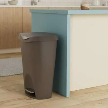 Show moreIntroducing the Umbra Brim 13-Gallon Trash Can, the ultimate marriage of style and functionality that redefines waste disposal for both home and office environments. This innovative trash can features a sleek, sophisticated design that not only emphasizes aesthetics but also merges seamlessly into your modern decor. Crafted with convenience in mind, the robust stainless-steel foot pedal allows for hands-free operation, making everyday waste disposal a breeze. Plus, the remarkable soft-close lid ensures a quiet, gentle closure, keeping your space tranquil and orderly.