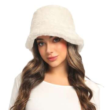 Umeepar Winter Faux Fur Fuzzy Bucket Hat Fluffy Warm Hat for Women Men (US, Alpha, One Size, Beige)