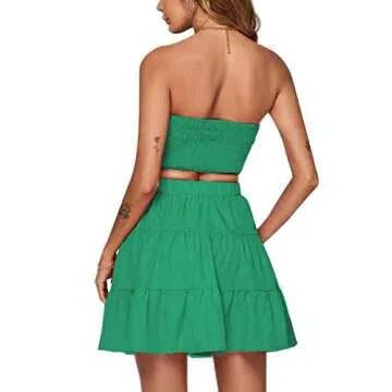 Show moreDiscover the charming allure of the Umenlele 2 Piece Outfit, a delightful ensemble designed to elevate your summer wardrobe. The perfectly coordinated tube top and ruffle mini skirt combination offers a unique twist front design, ensuring you stand out during sunny outdoor adventures. The tube top is crafted with a ruched back, providing comfort and flexibility, making it a fantastic choice for girls and women alike. The elastic high waist of the skirt sits perfectly above the knee, featuring a ruffle layer hem that embodies the essence of summer fun.