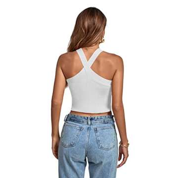 Umenlele Women's Criss Cross Halter Crop Top Sleeveless Ribbed Knit Cami Tank Tops White X-Small