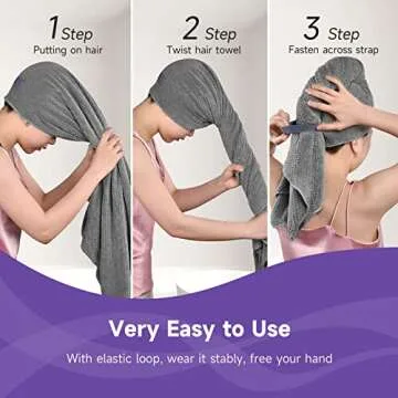 Umisleep Extra Large Microfiber Hair Towel for Women Long, Curly, Thick Hair, Super Soft Anti Frizz Quick Dry Hair Towel Wrap, Ultra Absorbent Hair Turban with Elastic Band Grey