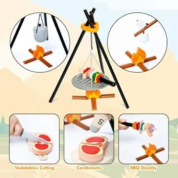 - Realistic Toy Campfire: Designed for both indoors and outdoors, this wooden campfire allows kids to create their own BBQ experiences, making pretend play exciting and interactive.