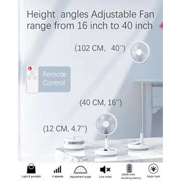 Introducing the UN UNITEDTIME Foldable Fan, the perfect companion for anyone who values convenience and performance. Designed for versatility and portability, this innovative fan measures only 4.7 x 8.1 inches when folded and weighs a mere 2.97 lbs. Its height is fully adjustable, ranging from 16 to 40 inches, and it features a remarkable 180-degree tilt for customized airflow—making it suitable for a variety of settings...