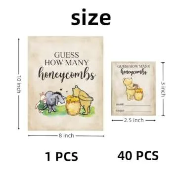Unbala 40Guests Classic Pooh Party Game Cards Guess How Many Honeycombs Game for Baby Shower Newborn Party Decoration Winnie Birthday Games Supplies