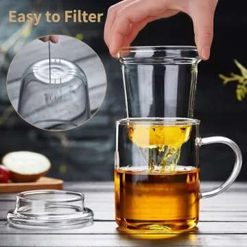 Show moreExperience the art of tea brewing redefined with our Unbreakable Glass Tea Cup with Infuser and Lid. This exquisite 17oz tea mug is thoughtfully designed to enhance your tea-drinking journey. At the heart of its design is a beautifully crafted glass filter that effortlessly strains loose leaf tea, granting you a pure and flavorful sip without any residue. Made from high borosilicate glass that can withstand high temperatures, this elegant tea cup is both microwave and dishwasher safe, ensuring that safety meets durability in your daily brewing routine.