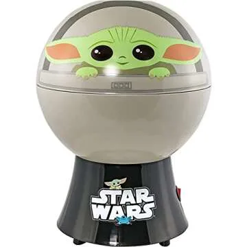Show moreExperience the fun of movie nights and snack time with the **Uncanny Brands Star Wars The Mandalorian Popcorn Maker – Baby Yoda**! This whimsical kitchen appliance not only serves as a conversation starter but also brings the beloved character to your kitchen in a delightful, functional way. Its top cover flips over to become a serving bowl, showcasing Baby Yoda while providing a hassle-free popcorn experience. Engineered with health in mind, the popcorn maker uses a hot-air popping method that eliminates the need for oil, ensuring a healthier snack option for the entire family. Whether it’s for birthday parties or casual movie nights, this popcorn maker is sure to add a touch of the galaxy far, far away to your culinary adventures! Keep the force of snacking strong with Baby Yoda and enjoy delicious popcorn in just 2-3 minutes.