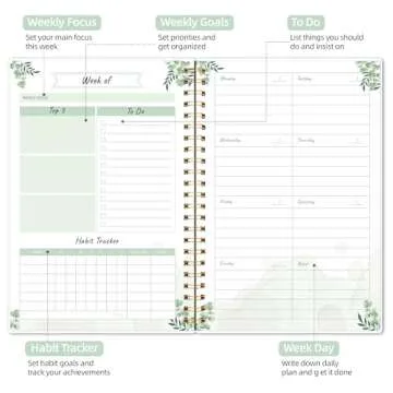 Undated Weekly Planner, Weekly To Do List Notebook with Goal & Habit Tracker Organizer, A5 5.8" x 8.0" Weekly Planner Notebook with Spiral Binding for Men or Women