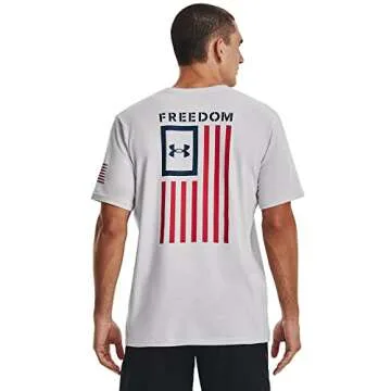 Unlike other t-shirts in the market, the **Under Armour Men's New Freedom Flag T-Shirt** blends style with functionality flawlessly. While many brands opt for either comfort or design, this shirt excels in both. Its quality fabric stands up better to wear and tear compared to standard cotton shirts, maintaining its softness and fit even after numerous washes, which is often lacking in competitor offerings.