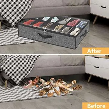 Under Bed Shoe Storage Organizer for Closet Fits 24 Pairs-Sturdy Underbed Shoe Storage Box Bins,Set of 2 (Linen-like Black)