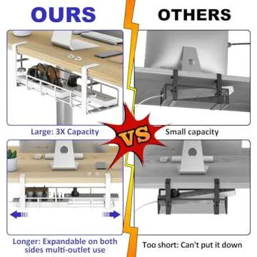Under Desk Cable Management Tray, 15.7'' White No Drill Steel Desk Cable Organizers, Wire Management Tray Cable Management Rack, Desk Cable Tray with Wire Organizer White(1pack