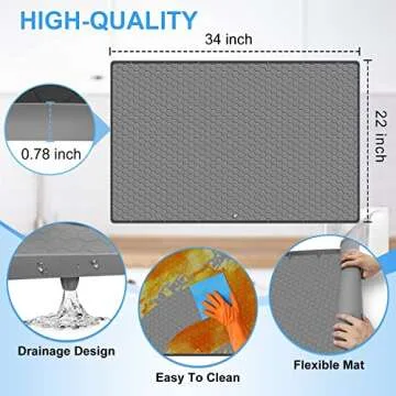 Under Sink Mat, 34"*22"*0.67", Waterproof, Cabinet Protector Silicone Mats for Kitchen & Bathroom, Holds up to 2 Gallon Liquiq(Dark Gray) (Thin860g)
