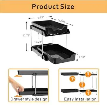 Under Sink Organizers and Storage, 2 Pack Large Capacity Heavy Load Pull-out Under Sink Shelf with 2 Tier Sliding Drawer for Kitchen & Bathroom & Cabinet & Pantry. (Black)