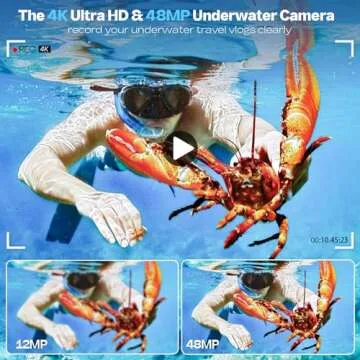 Underwater Camera, UHD 4K 48MP Autofocus Waterproof Camera with 16X Zoom Selfie Dual Screens,11FT Compact Waterproof Digital Camera with 64GB Card,Fill Light Underwater Camera for Snorkeling(Blue)