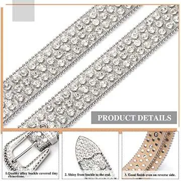 This stunning rhinestone belt not only serves as a functional accessory, but also as a captivating fashion statement that sparkles with every movement. Crafted from high-quality, shiny PU leather, it features a brilliantly designed bling buckle and shimmering rhinestones that are interspersed throughout the entire belt. The eye-catching design ensures that you stand out from the crowd, making it an essential piece for anyone who loves to showcase their unique style.