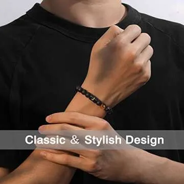 Show moreDiscover the perfect blend of style, inspiration, and sentiment with the UNGENT THEM Initial Bracelet for Boys. This exceptional piece is designed specifically for teen boys, intertwining personal significance with trendy fashion. Crafted from durable 8mm black agate and tiger eye stones, this bracelet not only appeals visually but also incorporates elements believed to alleviate stress. The sweet engravings read: "You're braver than you believe, stronger than you seem, smarter than you think, and loved more than you know," making it a constant reminder of their potential and worth. This combination of functionality and meaningful design makes it one of the most thoughtful gifts a young man can receive.