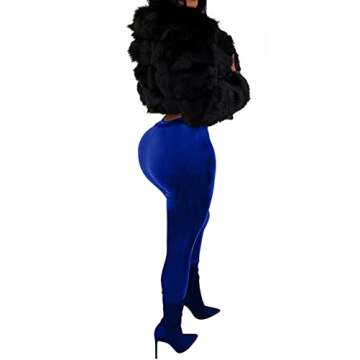 Uni Clau Women's Sexy Sheer Mesh Two Piece Jumpsuits See Through Tube Crop Top PU Leather Skinny Long Pants Club Romper Blue S
