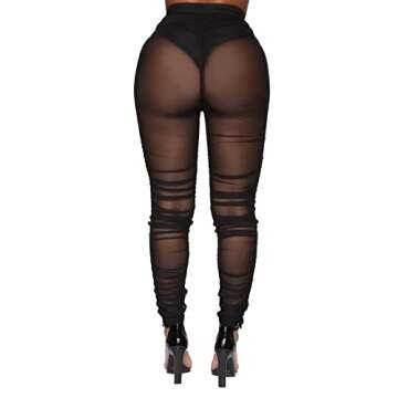 Uni Clau Women Sexy See Through Elastic Pencil Pants Mesh Leggings High Waist Sweatpants Tights Black L