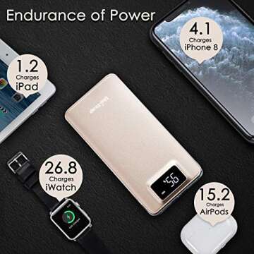 Uni-Yeap 11000mAh Battery Charger Power Bank with High Speed and Flashlight with LCD Screen Compatible for iPhone 11 Xs Xr X 8 7 6s 6 iPad Samsung Galaxy and All Smart Phone (Gold)