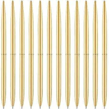 Unibene 12 Pack Ballpoint Pens-Gold, Slim Metallic Retractable Pens Set for Office, Students & Gifts