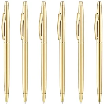 Show moreIntroducing the exquisite Unibene 6 Pack Slim Gold Ballpoint Pens, where elegance meets functionality in every stroke. Crafted from high-quality metal, these pens feature a robust high-performance ink system designed for a remarkably smooth writing experience. The chic, gold-accented design, combined with a convenient twist-to-open mechanism, ensures that each pen not only serves as a reliable writing tool but also adds a touch of luxury to your workspace or personal stationery. Whether you're taking notes in a meeting or signing a guest book in style, these pens are sure to make a memorable impression wherever your writing journey takes you.
