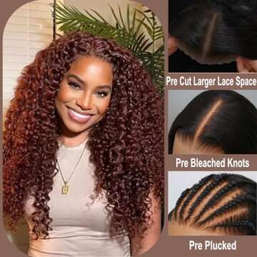 UNICE Bye Bye Knots Glueless Wig 7x5 Pre Cut Lace Front Wigs Human Hair Reddish Brown Deep Curly Invisible Knots Pre Everything Put on and Go Human Hair Wig Pre Plucked 150% Density 24inch