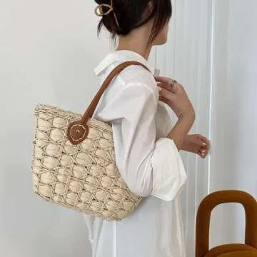 UniCloud Straw Tote Rattan Woven Summer Shoulder Bag (Light)