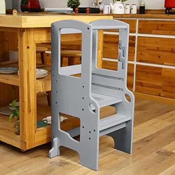 UNICOO® Height Adjustable Bamboo Step Stool for Toddlers | Toddler Step Ladder Step Stool for Toddlers | Kitchen Step Stool | Safe and Sturdy Standing Tower for Kids (Kids Stool Grey - M3)