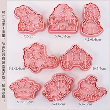 Unicorn Cookie Cutter Set, Princess Castle Plastic Cookie Stamps - 8pcs Cookie Cutters With Plunger Stamps Set