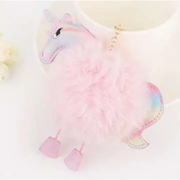 Unicorn Key chains Lovely Fluffy Fur Horse Bag Pendant Keychain for Girls Charm Keyring Handbag Car Pendant Supplies