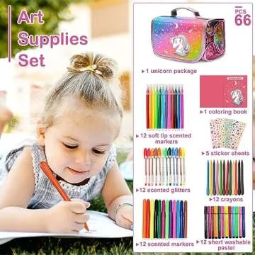 Unicorn Markers Set Gifts for Girls: Coloring Scented Markers Kit with Unicorns Pencil Case - 66PCS Art Supplies Drawing Toys - Birthday Christmas Gift for Kids 4 5 6 7 8 9 10 Years Old