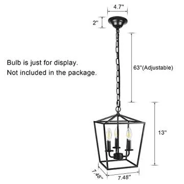 Unicozin Vintage Lantern Pendant Light, 3-Lights Lantern Chandelier for Dining Room Bar Cafe, E12 Base, Black (Bulbs Not Included)
