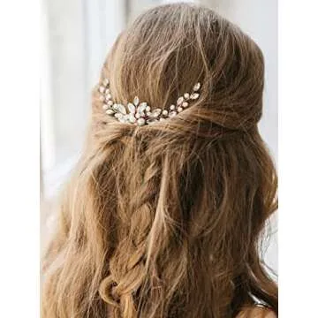 Unicra Bride Wedding Crystal Hair Pins Pearl Bridal Hair Pieces Rose Gold Wedding Flower Hair Accessories for Women and Girls Pack of 1 (A Rose Gold)
