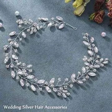 Unicra Bride Wedding Rhinestone Hair Vine Bridal Silver Hair Piece Crystal Headband Hair Accessories for Women and Girls (17.7inches) (Silver)