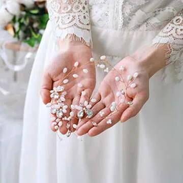 Unicra Crystal Bride Wedding Hair Vine Opal Pearl Bridal Hair Piece Rose Gold Hair Accessories for Women and Girls (A-Rose gold)