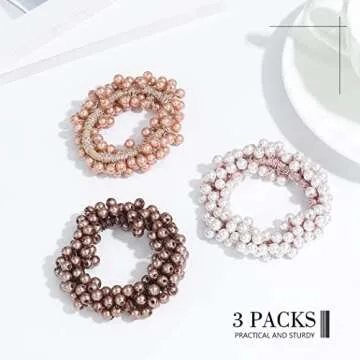 Unicra Pearl Hair Ties Beaded Fancy Elastic Scrunchies Set Fashion Decorative Ponytail Holder Pearls Hair Accessories for Women and Girls 3PCS (Pearl-D)