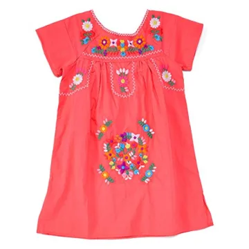 Show moreunik Traditional Mexican Girl Embroidered Knee Length Dress Coral Size 4 stands out as a beautiful tribute to traditional Mexican craftsmanship, merging vibrant culture with modern style. Perfectly tailored for little ones who love to embrace their heritage while looking adorable, this dress is intricately embroidered with traditional Mexican patterns that resonate with significant cultural occasions. Whether it's for Christmas, birthdays, or lively celebrations like Cinco de Mayo, this dress is sure to be a cherished addition to your girl's wardrobe.