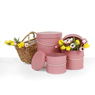 Show moreIntroducing the UNIKPACKAGING Premium Quality Round Flower Box Set – a stunning ensemble designed for those who appreciate beauty and functionality in gift presentation. This elegant set of three round boxes, crafted in a delightful Dusty Rose hue, is perfect for showcasing your flower arrangements and gifts in a truly luxurious manner. Each box is meticulously constructed to ensure durability and charm, making them an ideal choice for any special occasion. With sizes ranging from Small (6.7 dia. x 5.5 inch) to Large (9 dia. x 7.6 inch), you can certainly find the perfect fit for your floral or gift needs. Remember, flowers are not included, allowing you the freedom to curate your own unique arrangements.
