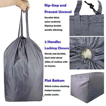 UniLiGis Washable Travel Laundry Bag with Handles and Drawstring, Heavy Duty Large Enough to Hold 3 Loads of Laundry, Fit a Laundry Basket or Clothes Hamper, 27.5x34.5 in,Grey