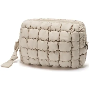Unilily Quilted Makeup Bag - Cute Puffer Travel Toiletry Bag for Women, Perfect Large Cosmetic Pouch for Essentials