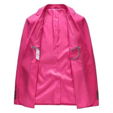 UNINUKOO Mens Suit Slim Fit 1 Button 2 Piece Wedding Party Holiday Tux Suits for Men US Size 34 Pink