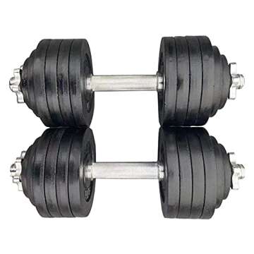 The Unipack design allows you to easily adjust the weight in increments of 2.5 lbs, making it suitable for progressing from beginner to advanced levels. Included in each set are eight 5-lb plates, two 2.5-lb plates, and two 1.25-lb plates, all made with a robust cast iron material that ensures durability. The collars and handles are threaded for a secure fit, ensuring your workout remains uncompromised. The setup is incredibly straightforward—no tools are required—allowing you to focus on your fitness goals without any hassle.