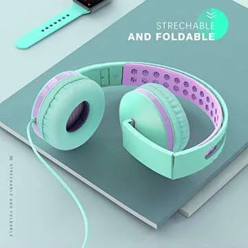 Unipows Kids Headphones for School - Girls Boys Teens Lightweight Foldable Wired Headset with Microphone, Volume Control, Stereo Bass for Cell Phone, Tablet, PC, Laptop (Mint Green and Purple)
