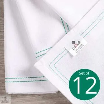 Show moreEnhance your dining experience with the UniQloth Set of 12 Cloth Dinner Napkins, expertly crafted to blend style with functionality. Made from 100% high-quality cotton, each napkin measures a generous 18x18 inches, ensuring ample coverage for all your dining occasions. The soft and breathable fabric provides a luxurious touch, perfect for everyday meals or sophisticated events alike. Featuring meticulous workmanship, these napkins exhibit tailored mitered corners and a chic white finish accented by striking green stitching, adding a touch of vibrancy to your table settings.