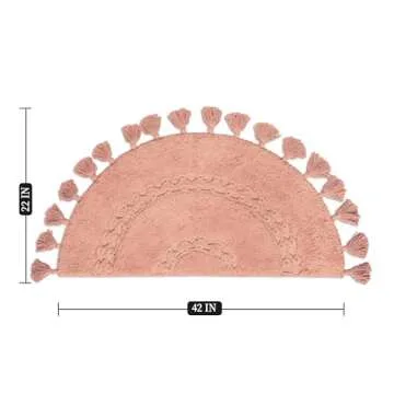 Unique Boho Rug - Half Circle Mat with Crochet Insert Detail & Tassels - 100% Cotton Boho Bathroom Rugs - Decorative Non-Slip Bohemian Rug for Bath & Bedroom - Cute Boho Décor - Dusty Pink 42x22