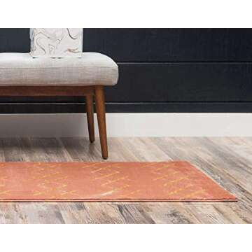 Show moreIntroducing the Unique Loom Marilyn Monroe Glam Collection Textured Geometric Trellis Coral Gold Runner Rug, a stunning blend of style and function designed to elevate the aesthetic of any room. Measuring at 2' 0 x 10' 0 (65x305 cm) and featuring an intricate geometric trellis design, this exquisite runner rug is beautifully crafted with a rich heatset polypropylene and metallic polyester pile. Its vibrant coral and gold color palette brings warmth and luxury to your home decor. The durable machine-made weave ensures longevity while making it perfect for high-traffic areas, providing an elegant touch without compromising on quality. Made in Turkey, this rug embodies a fusion of sophistication and practicality.