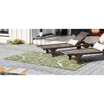 Show moreTransform your space with the Unique Loom Outdoor Botanical Collection Area Rug—a stylish and functional addition to both indoor and outdoor environments. Measuring 4' x 6' and presented in a beautiful green and ivory pattern, this rug stands out with its vibrant colors and unique design. Crafted for resilience, it’s ideal for high-traffic areas, making it perfect for homes with pets and children. The intricate detailing of the botanical theme effortlessly enhances your backyard, patio, or living area, providing comfort while showcasing your personal aesthetic. This rug is not just a product but a statement of elegance and quality.